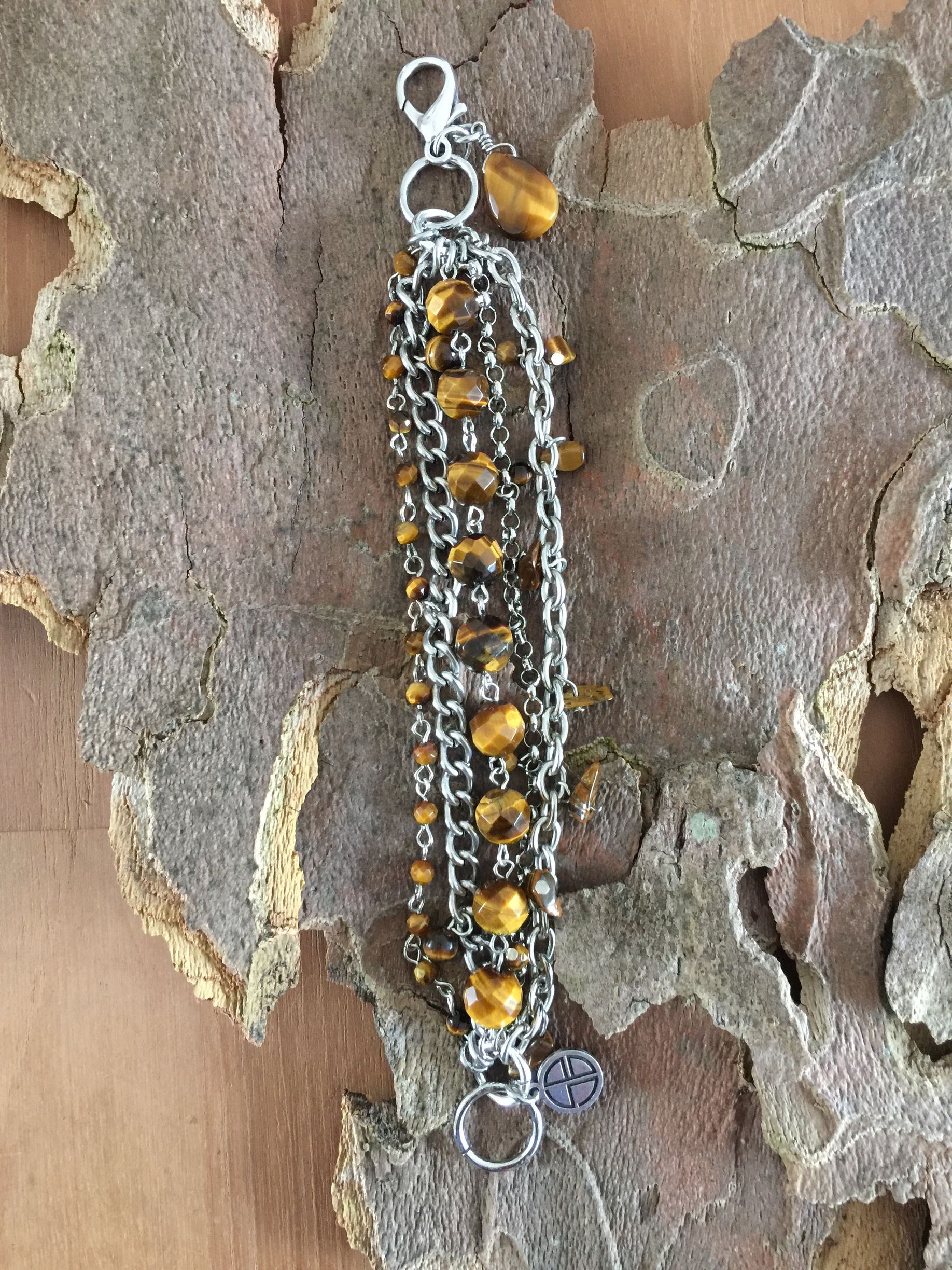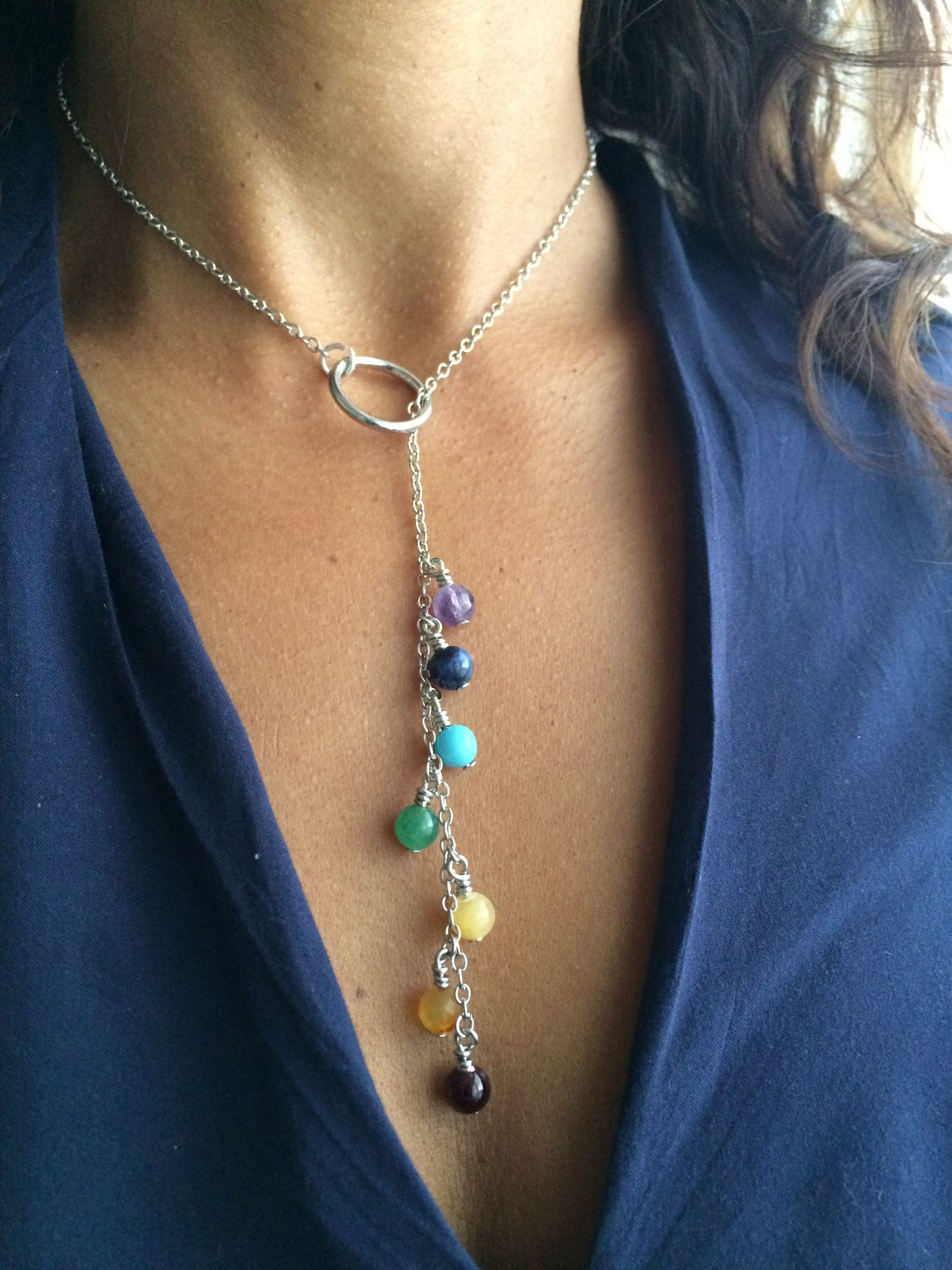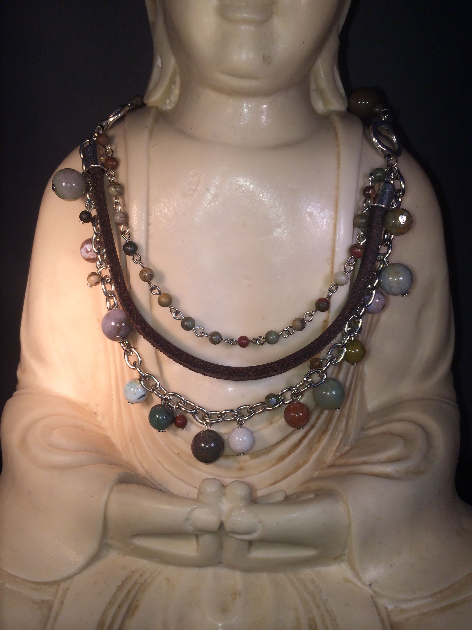 Korte gekettelde ketting met gladde multicolor jaspis in 4 mm, 8 mm en 10mm.