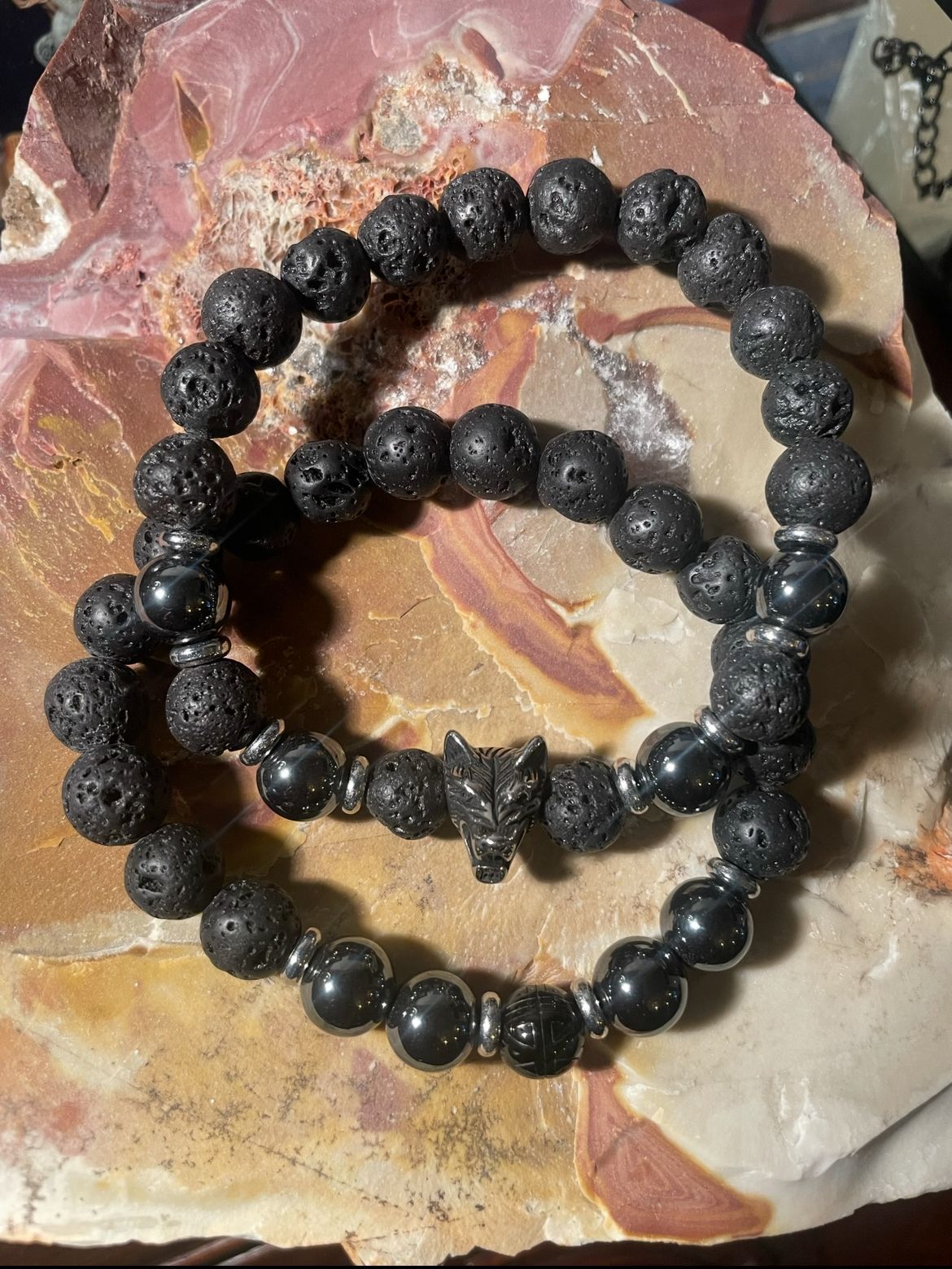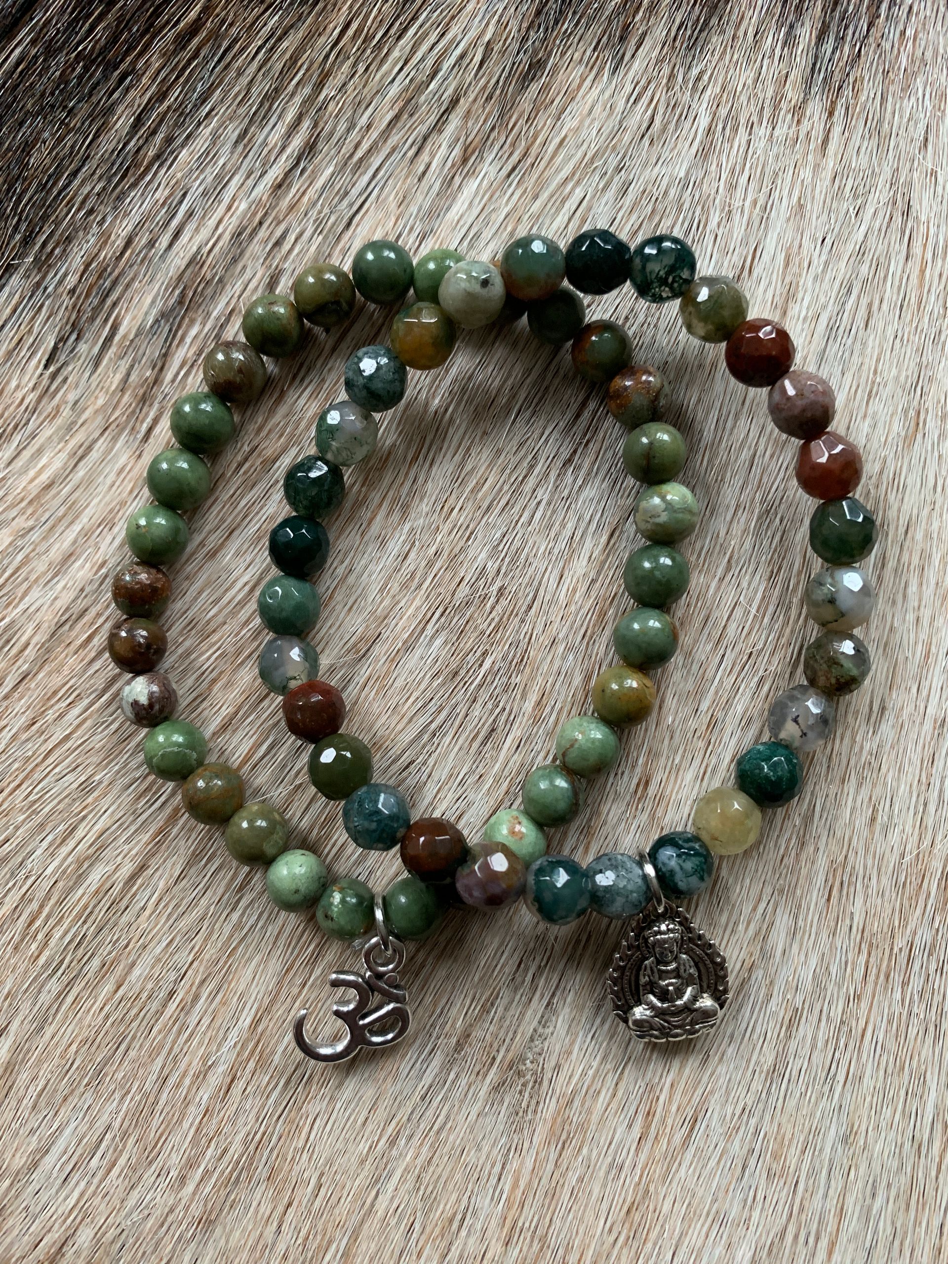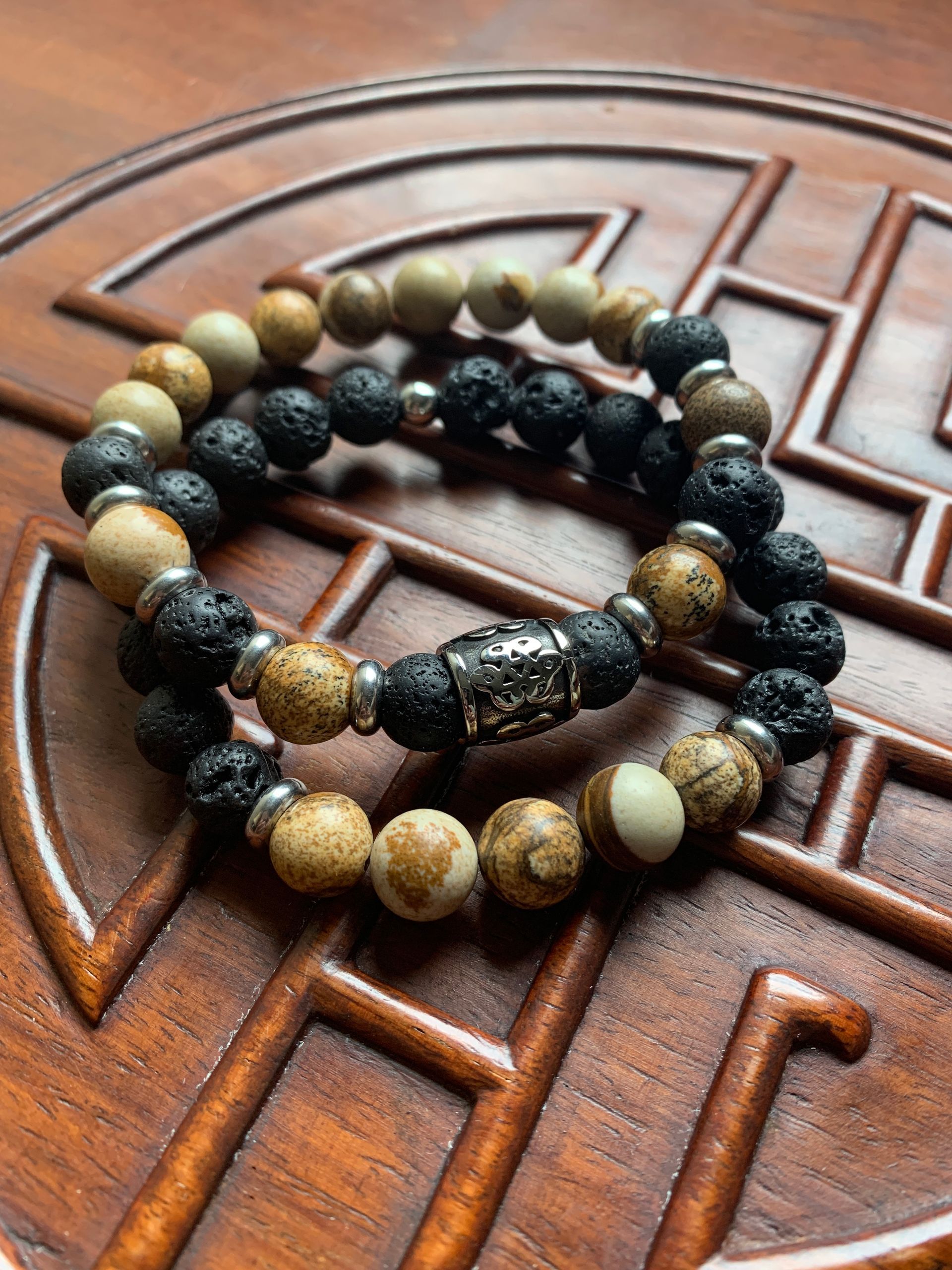 Beide armbanden Landschaps Jaspis gecombineerd met Lava en RVS kralen