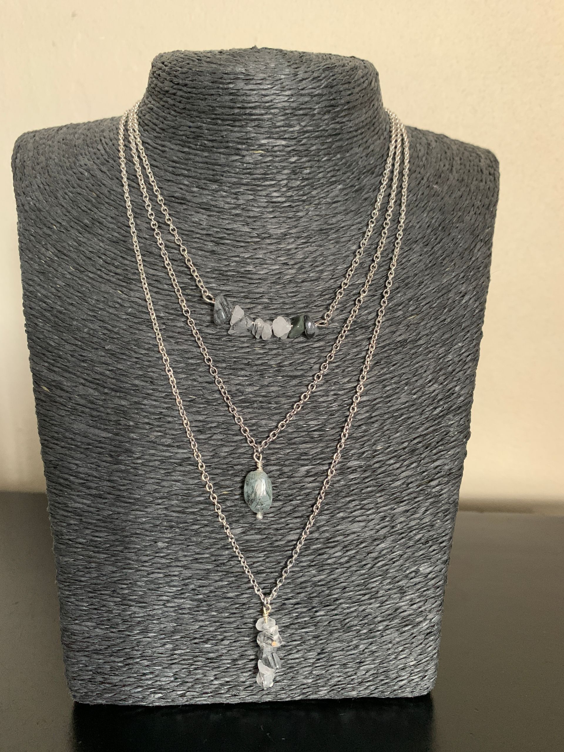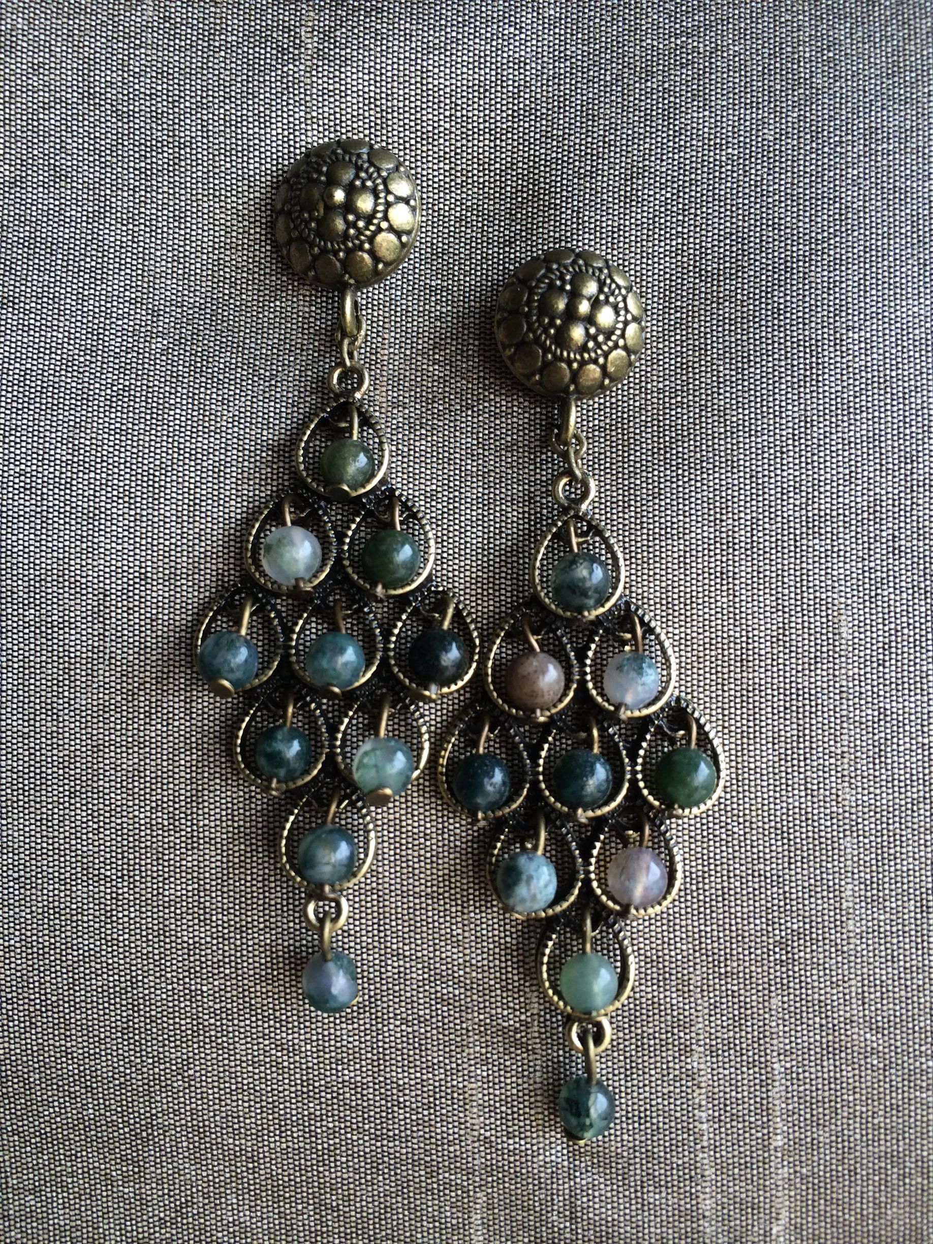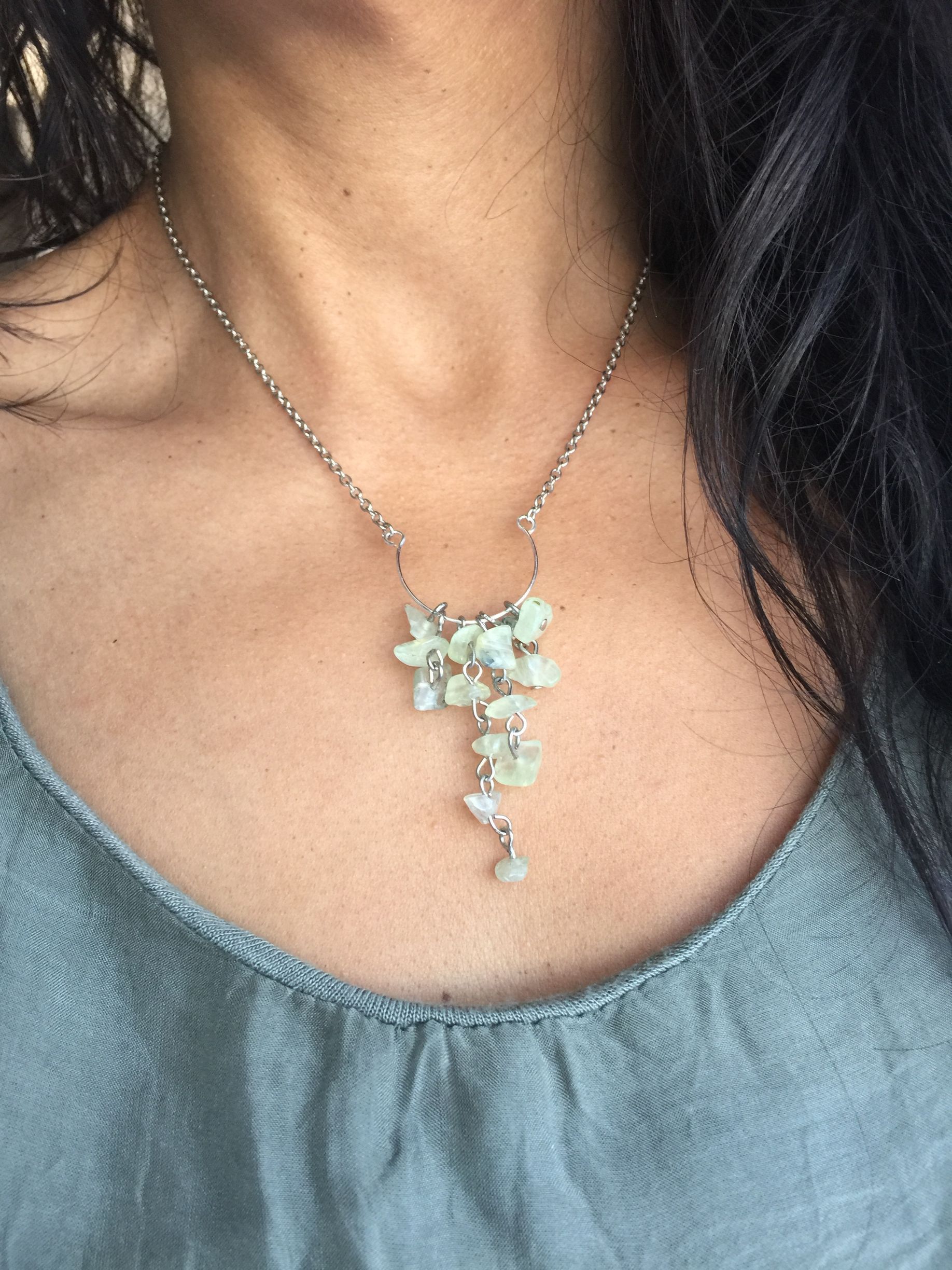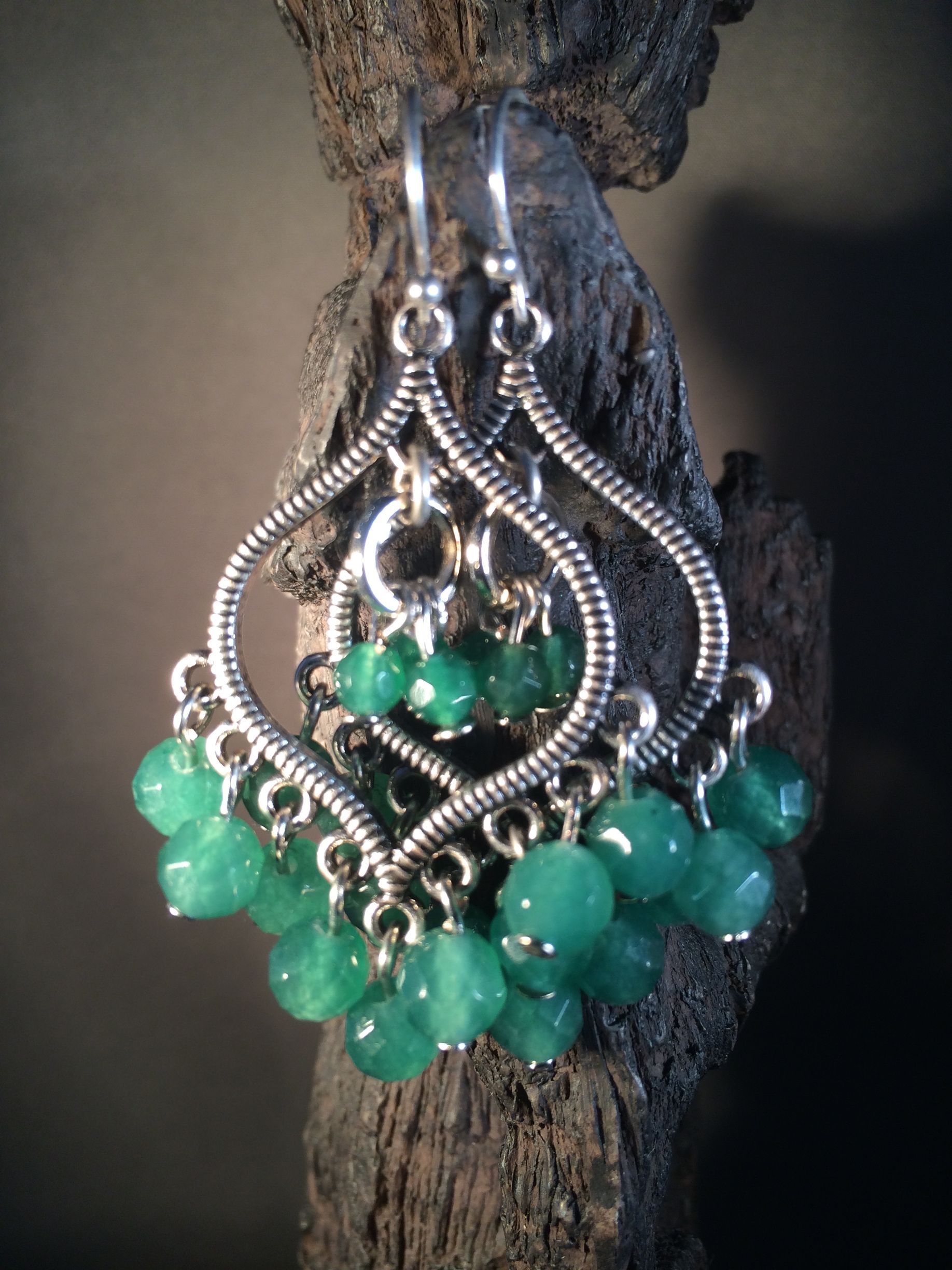 Chandelier met 4 mm gladde mosagaat kraaltjes.