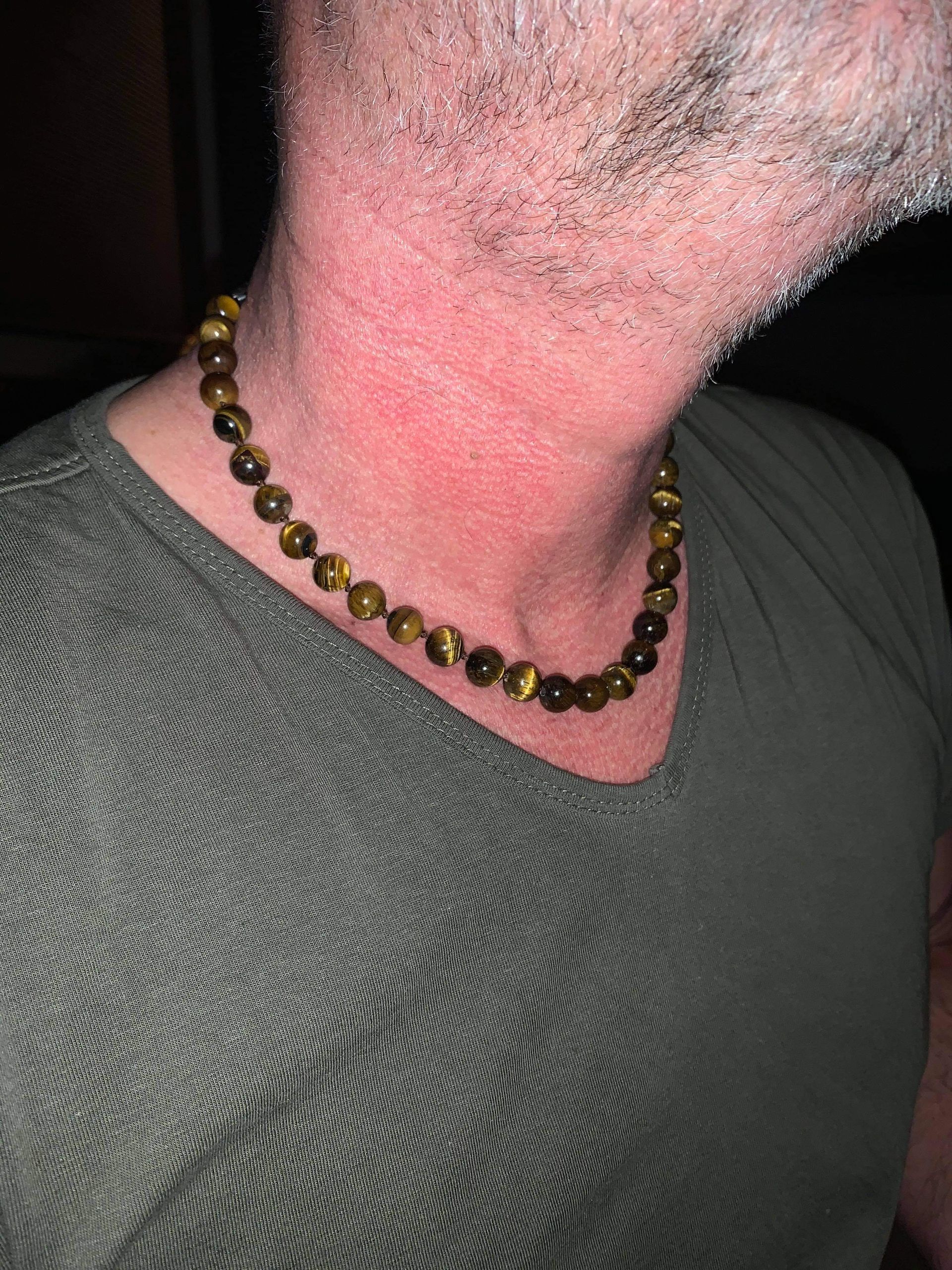Diverse kettingen en diverse formaten Tijgeroogkralen