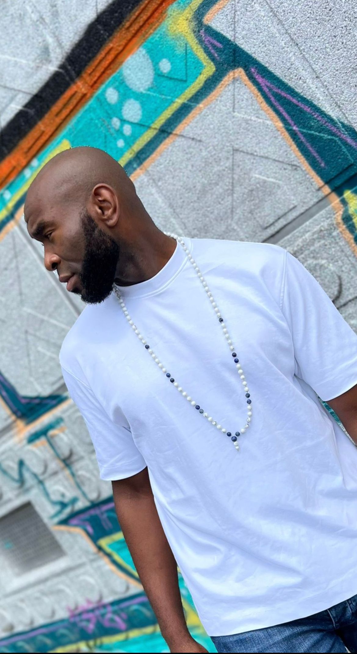 Geknoopt 8 mm matte Lapis Lazuli en Howliet met Guru kraal