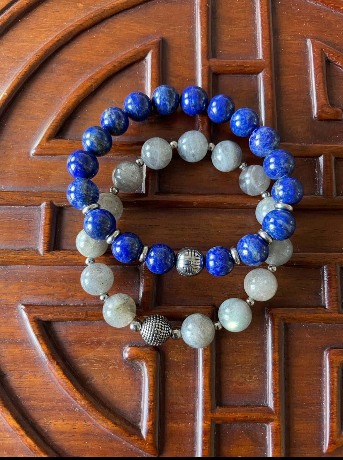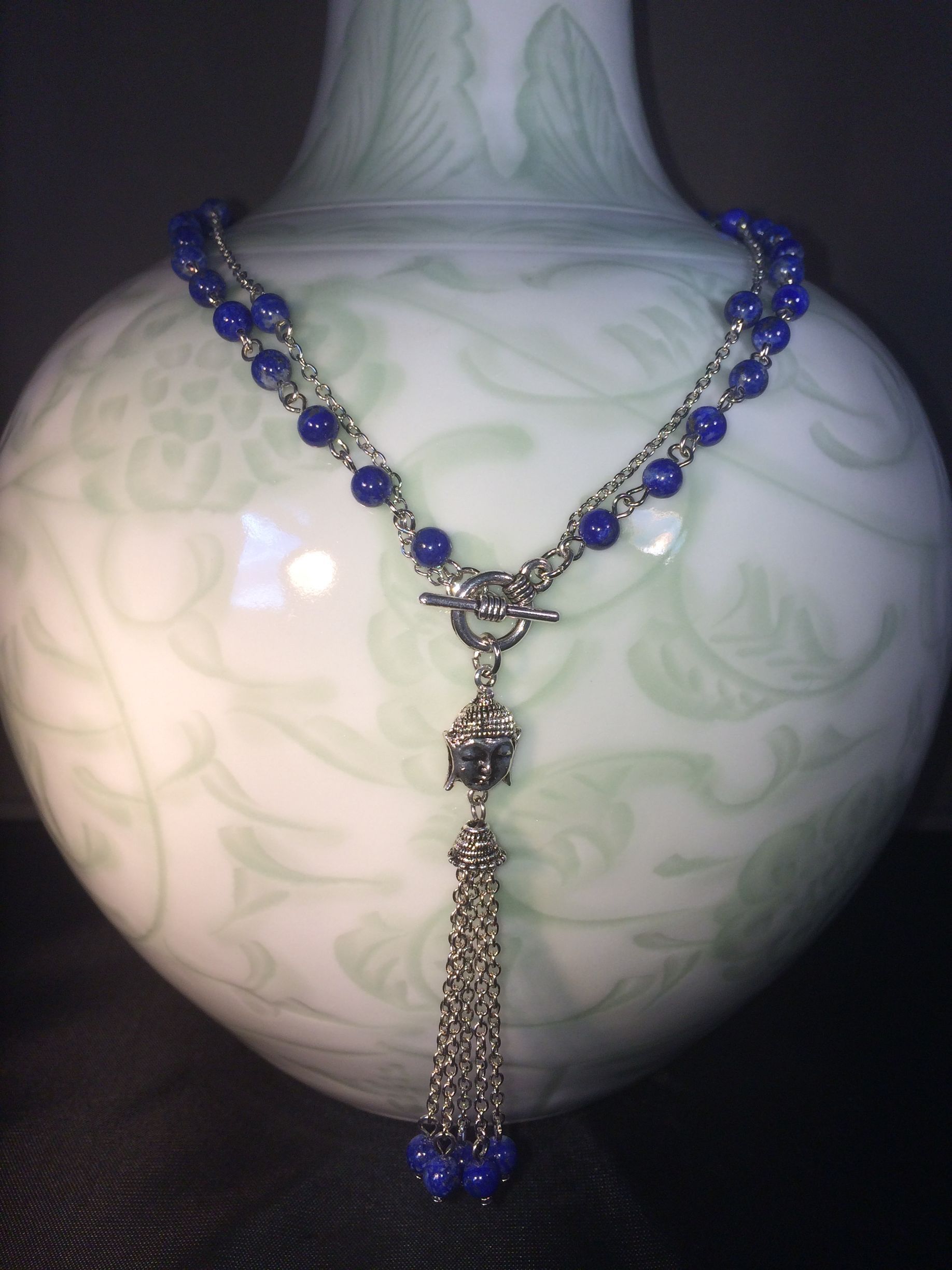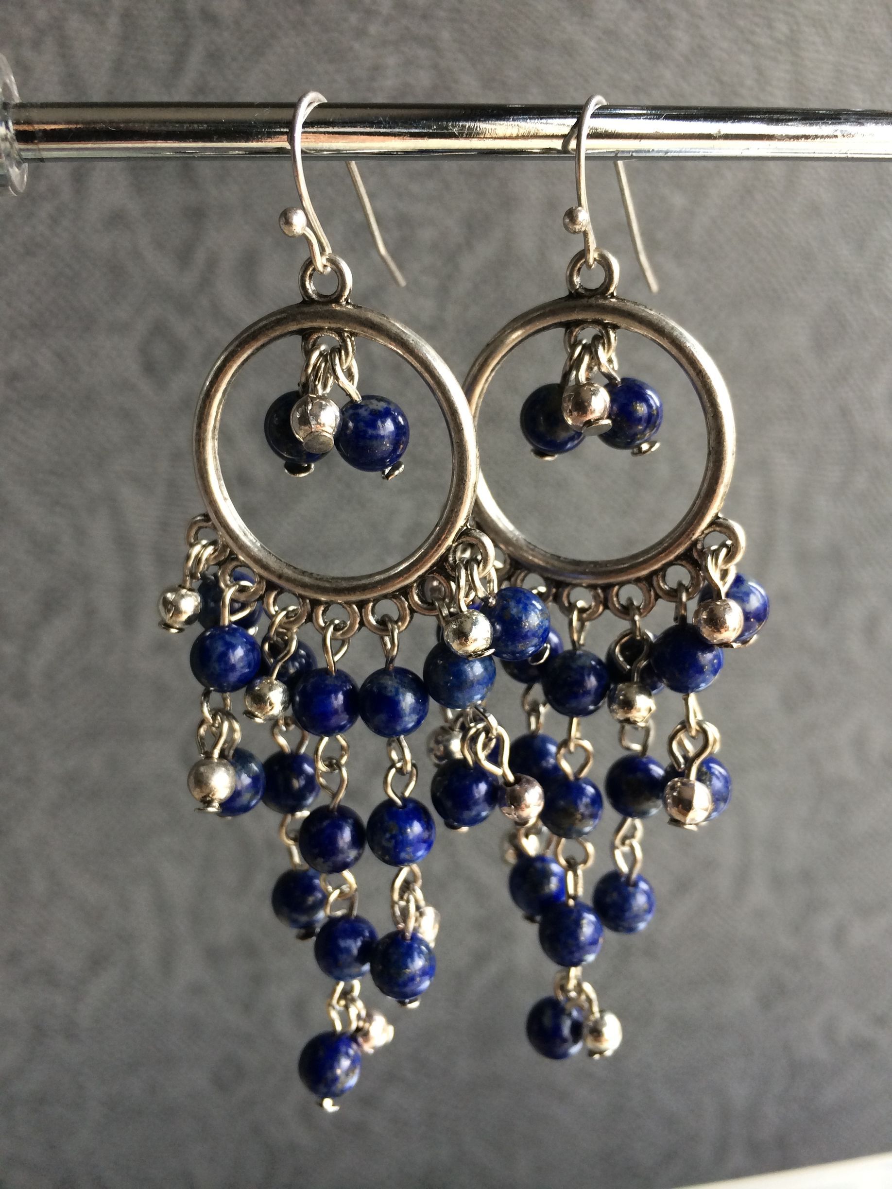 Super mooie chandelier met 6 mm Lapis Lazuli kraaltjes en rvs kraaltjes