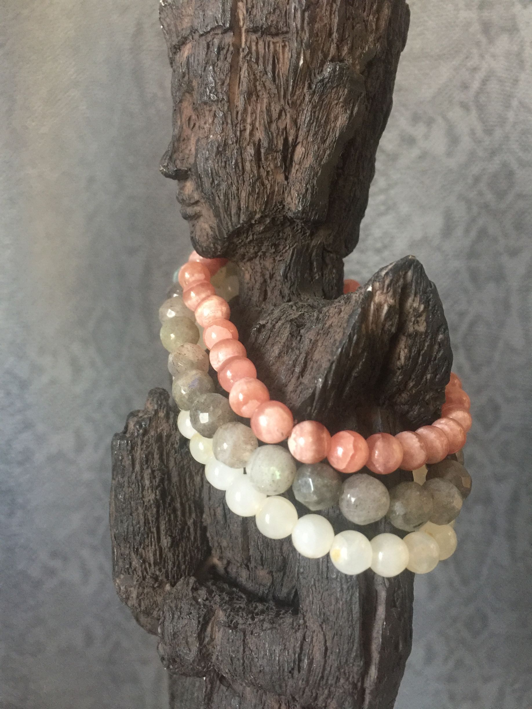 Rhodochrosiet, Labradiet en Regenboog Maansteen
